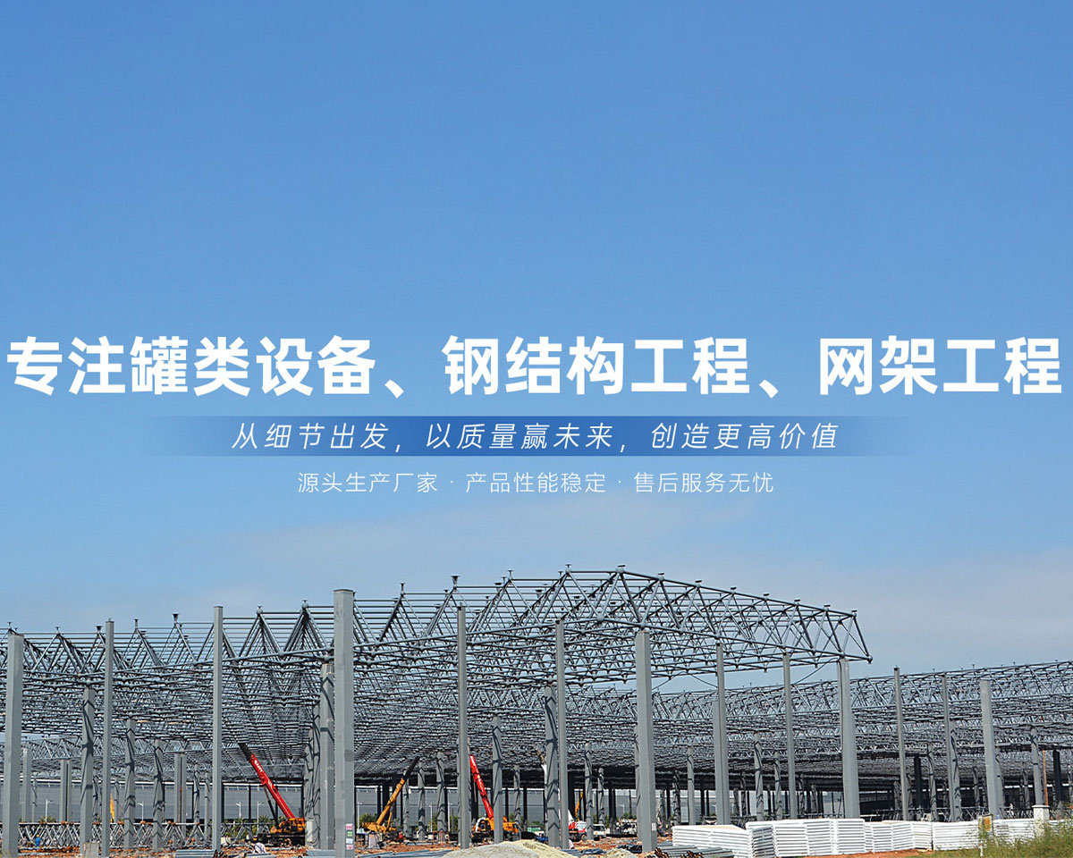 各式罐類設(shè)備、鋼結(jié)構(gòu)工程、網(wǎng)架工程的設(shè)計、制作、安裝為一體